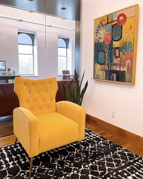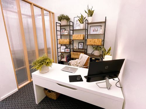 a boutique office space with a coffee shop vibe